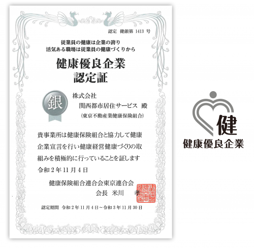 この度、当社は社員の健康づくりのための職場環境の整備等の取り組みが認められ、健康保険組合連合会東京連合会から「健康優良企業認定証」を授与されました。引き続き、社員の福利厚生等の充実を図ってまいります。